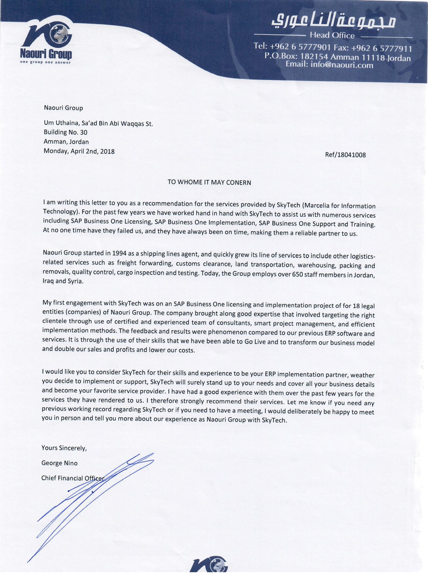 منذ أن بدأنا مع SkyTech، اكتشفنا أنها كانت تجربة ناجحة وأن الشراكة مع SkyTech كانت الخيار الصحيح الذي اتخذناه. في كل مرحلة، كانت SkyTech على استعداد دائم لتقديم الدعم من جميع الجوانب، الاستشارات والتدريب والتنفيذ.